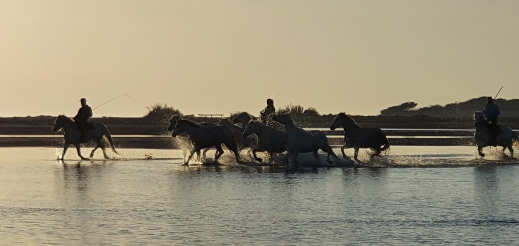 • La Camargue, une région mondialement reconnue pour ses chevaux blancs emblématiques, les chevaux camarguais.